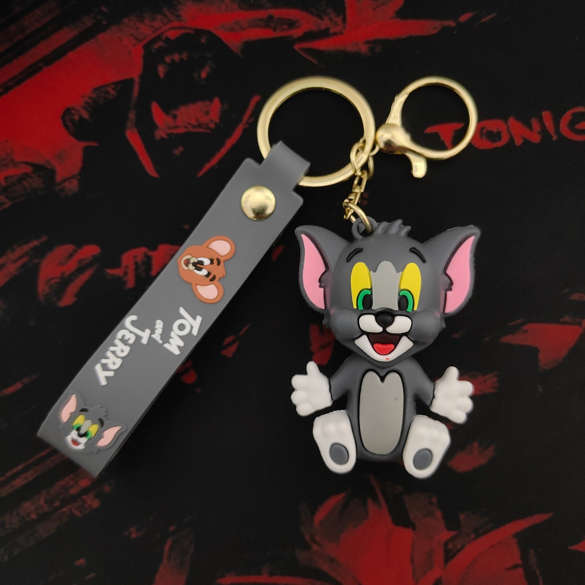 Featuring Tom with his signature grey fur, expressive green eyes, and a wide mischievous grin, this keychain perfectly recreates his classic cartoon antics. Made from high-quality soft rubber, it is lightweight, flexible, and durable, making it ideal for everyday use. The attached grey wrist strap with “Tom & Jerry” text adds a nostalgic finishing touch that fans will instantly recognize.